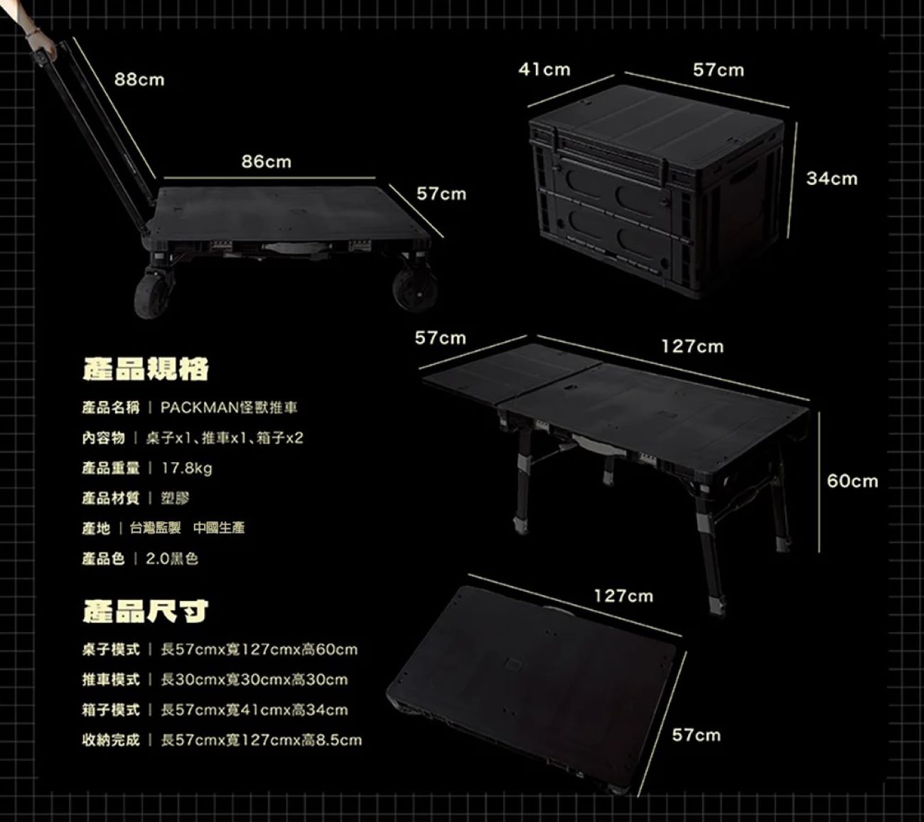 能夠變成 #拖車 #桌子 #椅子 #收納箱 的百變怪推車